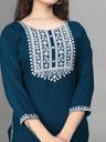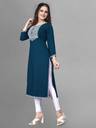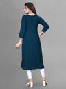 Combining traditional elements with a modern twist, this kurta boasts a sophisticated design. Its A-line cut and the quarter sleeves flatters your look. The thoughtful detailing ensures that it provides a polished look while maintaining traditional aesthetics. Whether worn to a festival or a casual gathering, it offers a refined and tasteful appearance.