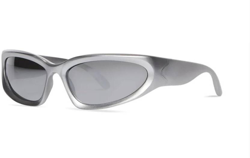 UV Protection Wrap-around Sunglasses (Free Size) (For Men & Women, Silver)