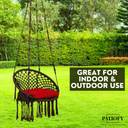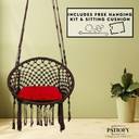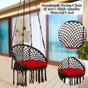 COMFORTABLE HAMMOCK CHAIR: This stylish hammock with a blue cushion is comfortable and durable. It does not lose the cotton thread, allowing the user to enjoy the soft sponge comfort, and it is large enough to have enough space to relax and stretch. Handmade bohemian style hammock swing with macrame net chair pattern and tassels, adding a unique touch to your place. SWING FOR ADULTS INDOOR/OUTDOOR USE: Anytime, anywhere can easily move - in addition to the balcony, terrace, backyard outside more, reading books, magazines, or tablet at the same time to hang out and snuggling in the comfortable premium c-swing with cushion/ chair cushion - listen to the rain, crickets, birds, or enjoy a quiet night. Durable design that is comfortable for the whole family. BEST SWING FOR HOME INDOOR GARDEN PATIO QUALITY ASSURANCE: The soft and sturdy premium swing chair is made of soft cotton to ensure that they will not be torn or damaged. It is impossible to penetrate using traditional hanging chairs, so it is a good place for children or pets, and there is no smell and the chair is very comfortable. SWING HANGING CHAIR JHULA COZY AND RELAXING CUSHION: The hammock chair provides the best reading space, and with the relaxing swing cushion, you can choose a comfortable posture, and then you can easily meditate or enjoy the scenery. The elegant and modern hanging swing chair cushion can also be used when reading, meditating, relaxing, watching TV, playing with your kids, and so on.