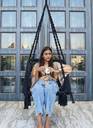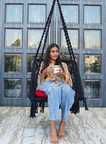 Patiofy Square Shape Wooden Swing Chair with Cushion/ Swing for Adults Home/Jhula Indoor Cotton Large Swing (Black, DIY(Do-It-Yourself))