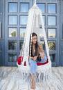 Patiofy Swing for Adults Macrame Swing Chair for Adults for Home with Blue Cushion Cotton Hammock (White, Red, DIY(Do-It-Yourself))