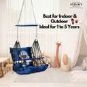 BABY SWING PRODUCT SPECIFICATION: Item Package: 1 Swing and 2 S Hook || Material: Cotton Fabric with Wooden Spreader Bar || Size: Sitting side: 17 x 17 inch & Back support side: 15 inch, Height: 62 inches || Waved Strongly: Age Range- 1 to 5 years, Weight Capacity: 50kg especially designed for children from 1 years to 5 Years.