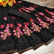 Embroidered, Heavy Designer Look, Thread Embroidery, Office Look, Banarasi, Wedding Look, Solid saree with contrast border, Net, Embroidered Net, Night Party, Traditional collection, Festive Look, Contemporary collection