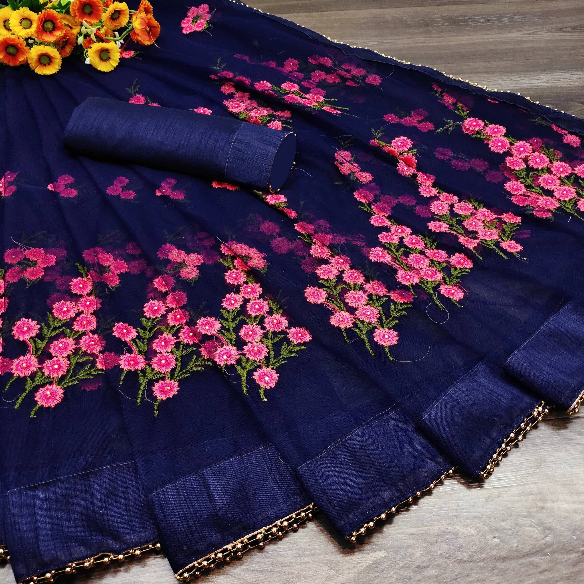 ** FABRIC ** : Saree - Net (Color - Royal Blue), Blouse -Art Silk (Color -Royal Blue), ** SIZE ** : Saree - 5.5 Meter, Blouse - 0.8 Meter, ** PACKEGE CONTAIN ** : 1 Saree, 1 Unstitched Blouse Piece, ** DETAIL ** : Floral Embroidery Work, Moti Lace, ** WHY PURCHASE? ** : Branded Product, Soft Finished, Comfortable To Wear, Best Quality In Best Price
