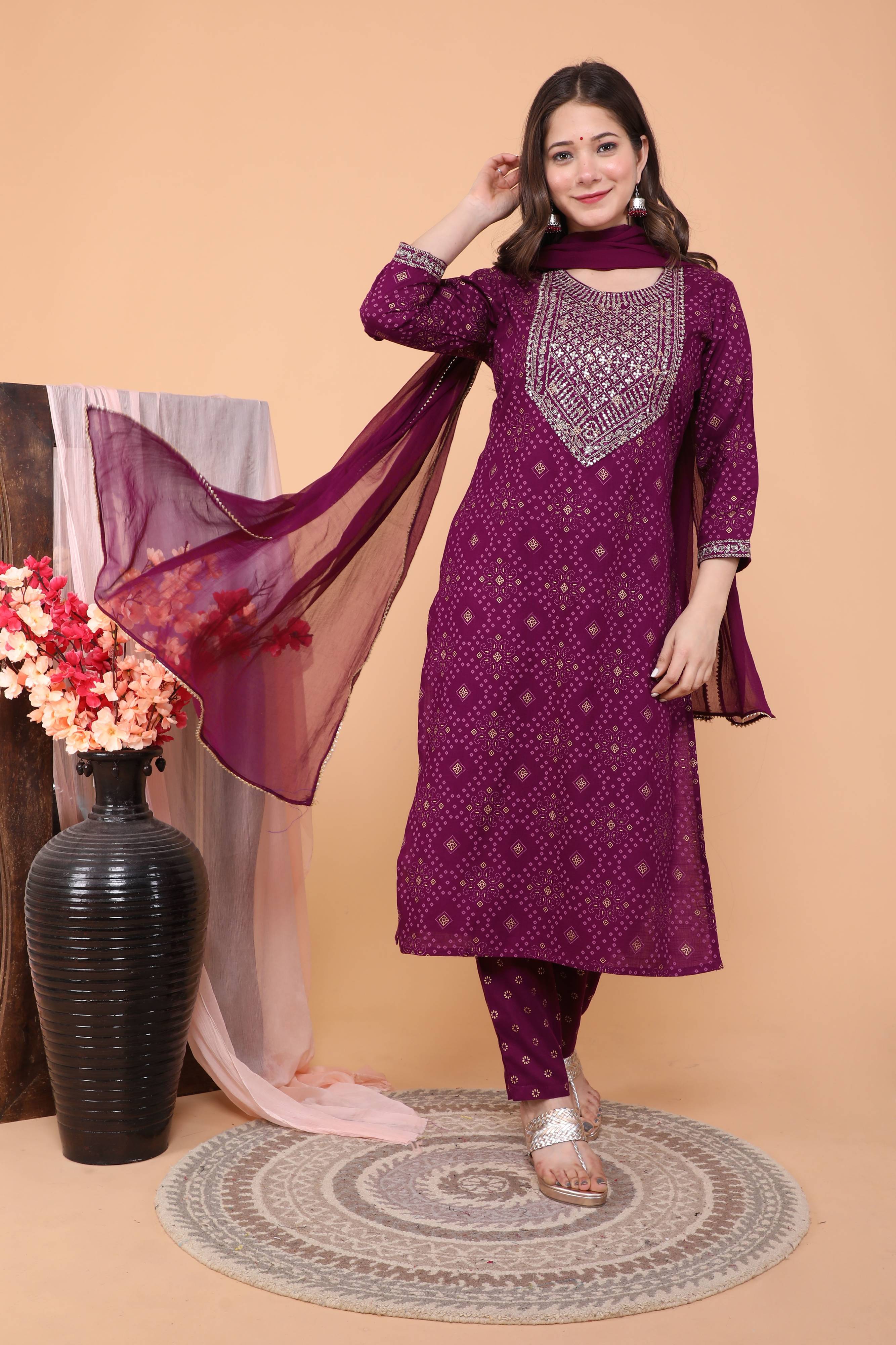 Patni Ethnic Self Design Kurta, Palazzo & Dupatta Set