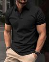 PATOIS Men's Polo Neck Solid Patterned Black Color Polyester Solid pique Polo Fabric Half Sleeve Casual Wear Regular Fit Western Wear Cycling SportsButtons Surface Style Cuffed SleevesMedium Length Collared Tshirt Pack Of One