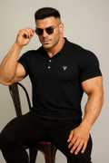 PATOIS Men's Polo Neck Solid Patterned Black Color Polyester Solid pique Polo Fabric Half Sleeve Casual Wear Regular Fit Western Wear Cycling SportsButtons Surface Style Cuffed SleevesMedium Length Collared Tshirt Pack Of One