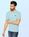 PATOIS Solid Men Zip Neck Blue T-Shirt