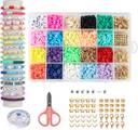 WELL ORGANIZED AND PACKED: All sannidhi clay beads are classfied and well organized by color and style, well packed in a transparent box for your convenience. Use these flat clay beads jewelry making kit to DIY projects to create gift, jewelary, bracelet or necklace, or beaded curtain, anything you want.PLAYFUL JEWELLERY MAKING ACCESSORIES KIT FOR KIDS: Make their own necklace, bracelet or charmings from here, the diy bracelet kit includes many accessories of exquisite styles and shapes. With the cute pendent kit for jewelry, pendents, and accessories helps kids to stimulate unlimited imagination and their fashion sense.ASSORTED COLOR CLAY BEADS KIT: Easy and fun DIY bracelet making set to both kids and adults. Including: 18 grids*200pcs=3600pcs clay beads, 50 letter beads, 40 star beads, 40 square beads, 8 seashell charms, 8 starfish pendants, 20 lobster clasps, 50 jump rings and 50 binders, 18 colors clay bead bracelets kit meeting your various DIY creation. Also coming with a roll of elastic strings and a pair of scissors, convenient for you to complete the DIY work.VERSATILE USAGE: The assorted jewelry making bracelet bead kit can be used to make necklack, bracelet, bag accessories, keychain, practical and beautiful DIY beads for bracelet making. You can also use this bracelet making kit to do an one-and-only gift for your friends, sister, besties as birthday gift, anniversay gift.PREMIUM AND DURABLE: The clay bead bracelet making kit girls is made of premium soft clay material, coating with non-toxic and non-odor pigment, smooth and comfortable to touch. Each bead is about 6-7mm. Note: This DIY clay beads bracelet kit is not for kids under 3. Keep them out of reach of these small accessories in case they accidentally swallow it.