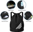 SEPERATE SHOE COMPARTMENT DESIGN: This sport drawstring bag is also with a seperate zipper shoe box which can fit most men shoes or women shoes, convenient for bringing a spare shoes for outdoor, also can be used as a dry and wet seperation compartment for your convenience.