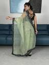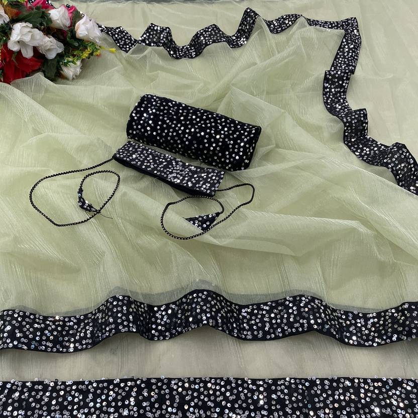 PATTARI Embroidered Bollywood Supernet Saree (Light Green)