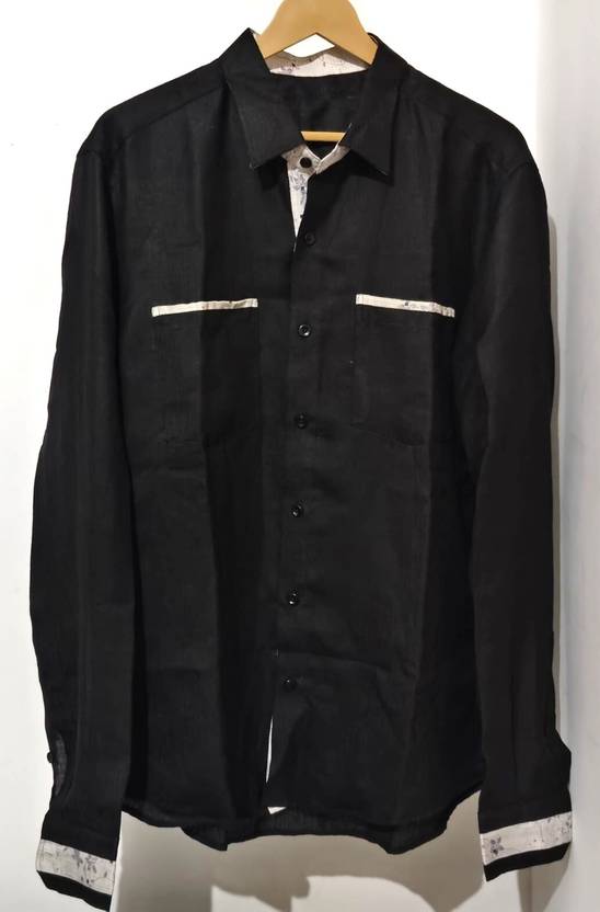 this shirt is made of linen fabric with double packet, 44 xl size semi casual black shirt fit for party wear