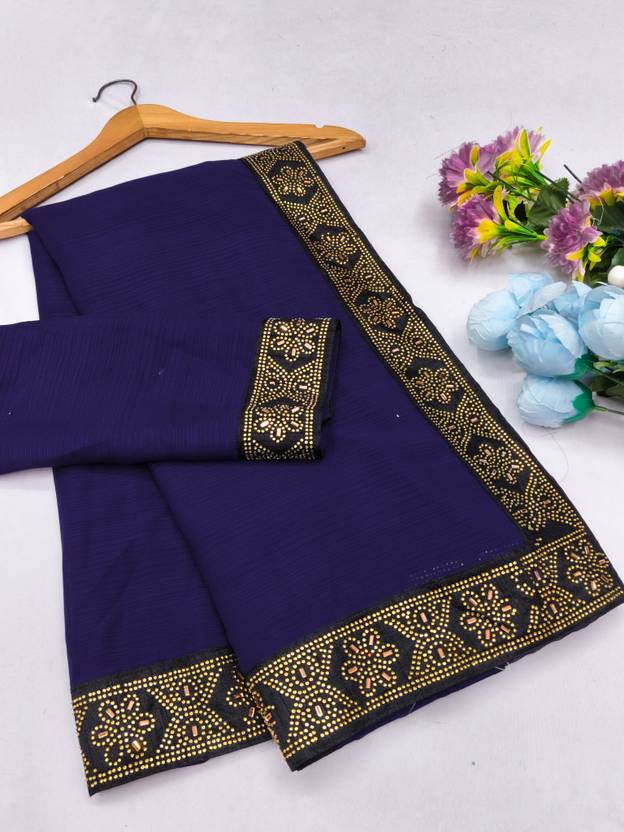 patu plus Solid/Plain, Self Design, Dyed Bollywood Georgette Saree  (Blue)