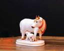 Patwari Arts Decorative Ceramic Cow and Calf Figurine, White, Traditional Indian Style. Decorative Showpiece - 14 cm (Marble, Multicolor)