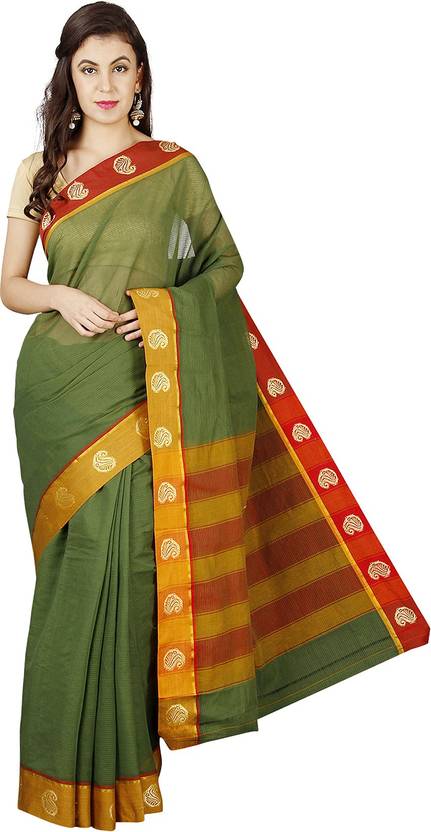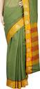 Drape yourself in this combed cotton material mehndi coloured sari. The border colours may interchange.