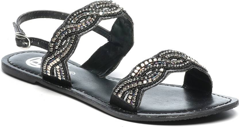 Women AMLSAN5204 Flats Sandal (Black , 4 UK/India)