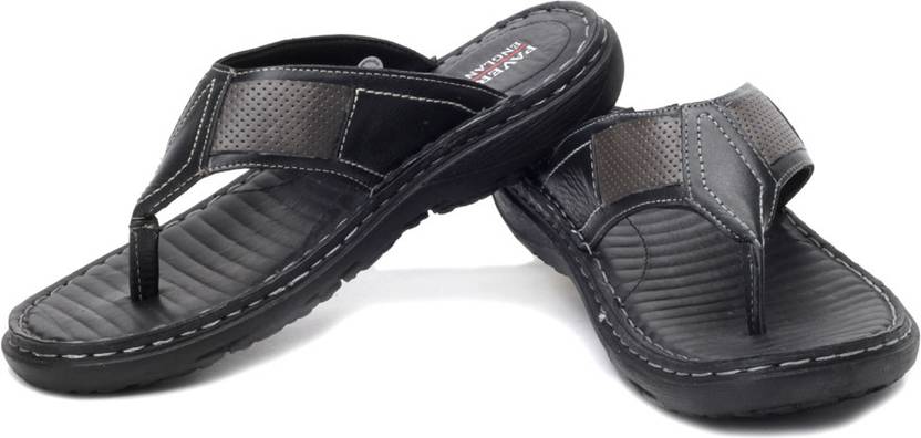 Casual, comfortable and stylish, this pair of black slippers from Pavers England infuses a cool vibe into your relaxed look. To ensure lasting durability, this pair of slippers is made using the finest leather materials. Enhanced with a toe partition, these slippers are perfect to be teamed with a printed tee and shorts.