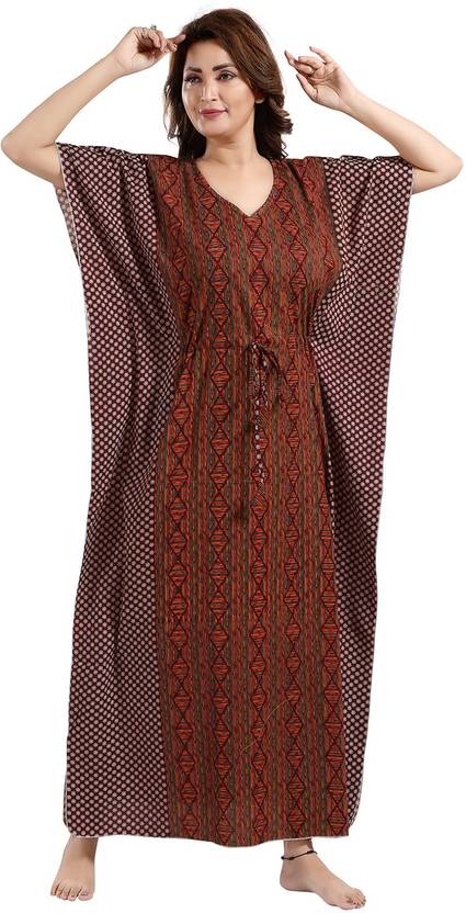 Experience the perfect blend of comfort and style with the Cotton Gujari Print Kaftan Nighty. This elegant nightwear combines traditional Gujari prints with breathable cotton fabric. The loose and relaxed kaftan style offers freedom of movement, while the vibrant patterns showcase rich cultural heritage. Crafted with high-quality cotton, it keeps you cool and cozy. Versatile for bedtime and lounging, this nighty is a must-have for those who value comfort and individual style.