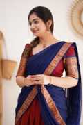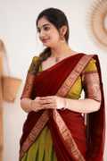 New special collection Half 1 Unstitched Lehenga, 1 Unstitched Blouse, 1 Dupatta Now In Trend 100% pure qaulity with awasome finishing work Jacquard banarasi work weaving multiple colores Unstitched lehanga Unstitched blouse along with heavy Unstitched Duppt. heavy kanchipuram jari weaving border (3 mtr) Blouse : cotton fabric with kanchipuram jari weaving border Dupatta: jari weaving border (2.5)mtr Ready Stock with Good qulity Book fast PRIMIUM QVALITY