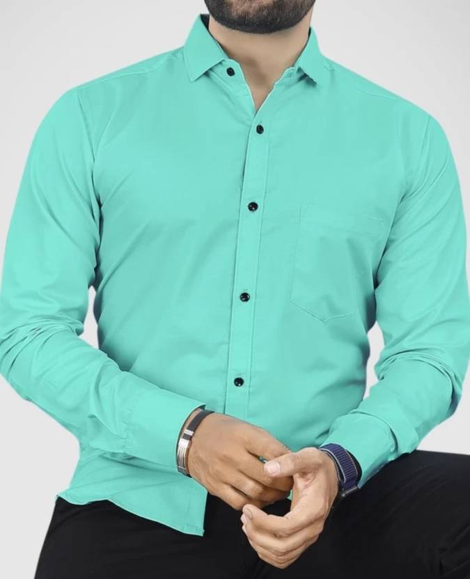 ROOP MISHREE Men Solid Casual Light Green Shirt