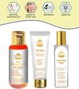 All these skincare products are made from natural ingredients and are free from harsh chemicals. They have skin-friendly ingredients that do not cause any side effects. The biocare oil contains moroccan and sea buckthorn oil, which help with glowing skin. The face wash does not contain parabens, which makes it perfect for sensitive skin, and natural ingredients like turmeric and saffron help increase the skin's inner beauty.