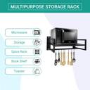 PAXMER Utensil Kitchen Rack Carbon Steel Wall Mount Microwave Oven stand/OTG shelf & Organizer with Hooks/multipurpose
