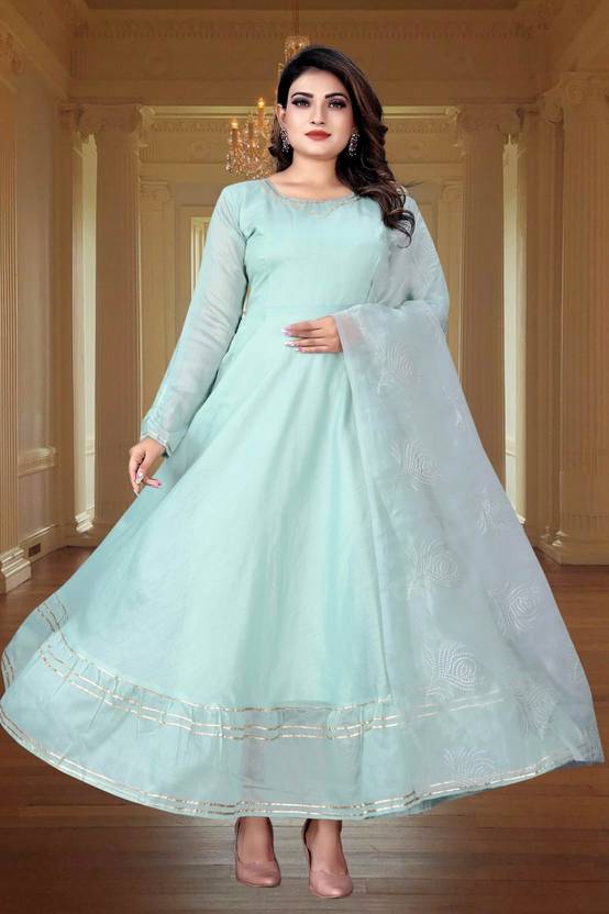 Embroidered Chanderi Stitched Anarkali Gown (Green)