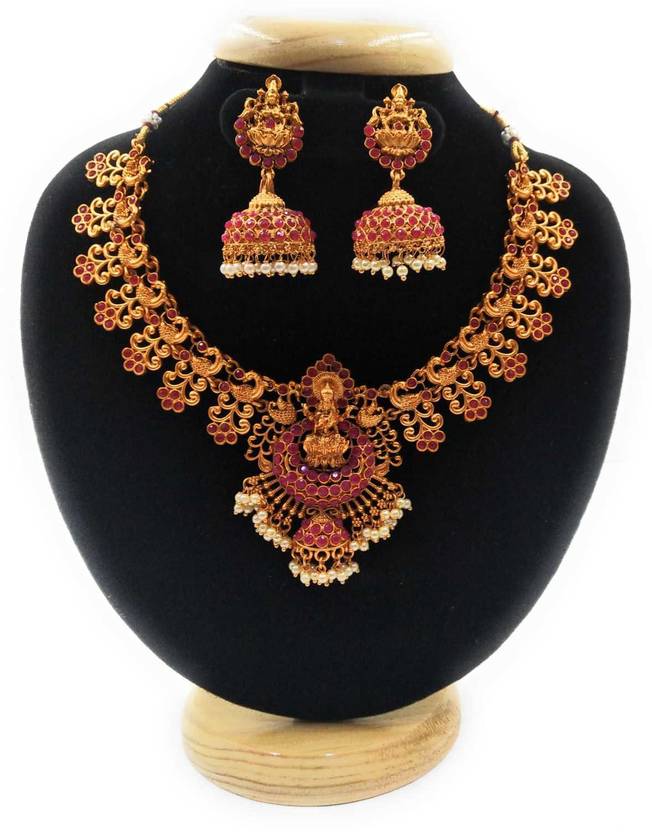 PBM CREATIONS Copper Gold-plated Red Jewellery Set (Pack of 1)