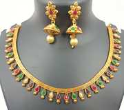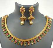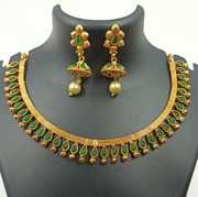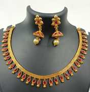 666 MATTE FINISH LAKSHMI dollar CHOKER NECKLACE SET withDANGLER jhumiki earring