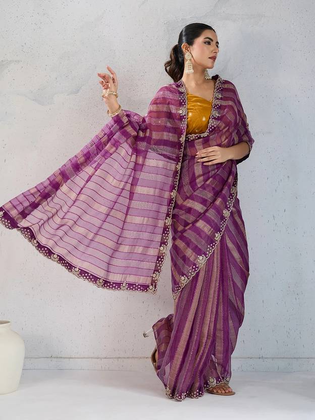 Pbs Prints Embroidered Bollywood Tissue Saree (Purple)