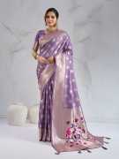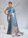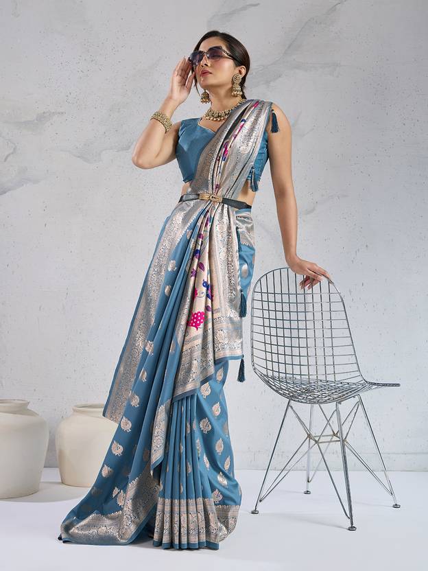 Art Silk Banarasi Woven & Embellished & Self Design Blue Color Saree With Blouse