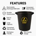 CAPACITY: Large 20-litre volume perfect for various storage needs and heavy-duty applications ESD Safe Dust Bin Anti-Static Waste Bin Conductive Dust Bin Static Dissipative Trash Bin ESD Waste Container Electrostatic Safe Trash Can ESD Garbage Bin Static Control Waste Bin Conductive Waste Receptacle ESD Protective Trash Bin