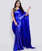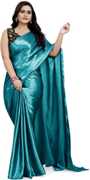 PCDESIGNER Solid/Plain Bollywood Satin Saree (Light Blue)