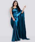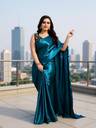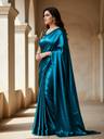PCDESIGNER Solid/Plain Bollywood Satin Saree (Light Blue)
