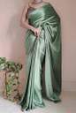 PD CLOTH VILLA Solid/Plain Bollywood Satin, Silk Blend Saree (Light Green)