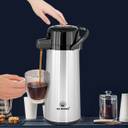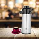 "• Airpot Tea/coffee Vacuum insulated flask keeps liquid hot for 24 hours • Fabricated inside and outside with 18/8 quality • Rust proof stainless steel • Can pour the liquid without removing the lid • Sturdy handle provided for ease of carrying "