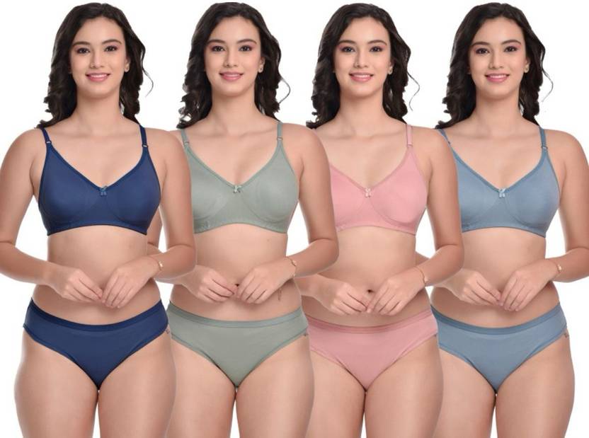 Bra & Panty Set Solid Multicolor Lingerie Set