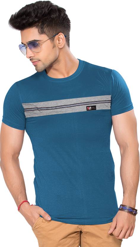 Men Colorblock Round Neck Pure Cotton Purple T-Shirt
