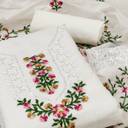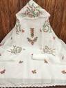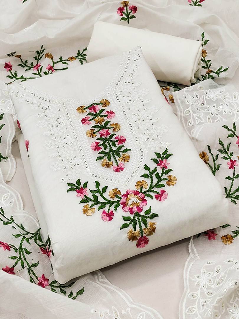 White colored suit is prettified with floral sequins embroidered work as shown which makes it appear classy. This top is made of chanderi fabric which is accompanied with santoon bottom, inner and chanderi dupatta. Women can buy this suit to wear for their festive and functions. Note:- The actual product may differ slightly in color and design from the one illustrated in the images when compared with computer or mobile screen.