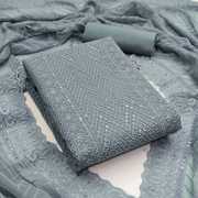 Cream colored suit is prettified with floral sequins embroidered work as shown which makes it appear classy. This top is made of chanderi fabric which is accompanied with santoon bottom, inner and chanderi dupatta. Women can buy this suit to wear for their festive and functions. Note:- The actual product may differ slightly in color and design from the one illustrated in the images when compared with computer or mobile screen.