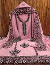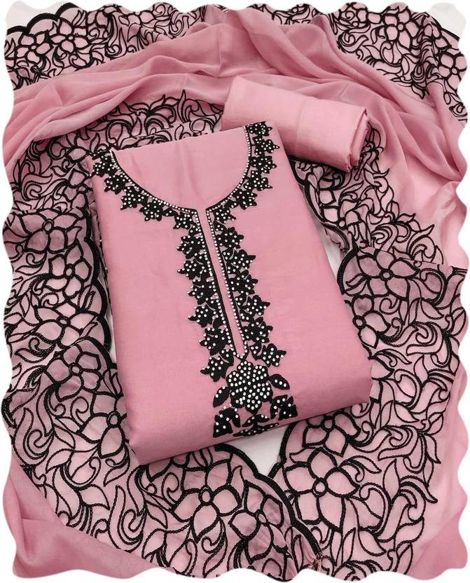This Pink unstitched dress material set, featuring intricate floral thread embroidery that adds a refined and festive charm. The top is tailored from luxurious georgette fabric, offering a soft and graceful drape. Paired with a heavy santoon bottom and inner for structure and comfort, the set is completed with a beautifully embroidered georgette dupatta that ties the whole look together. Ideal for festive functions, evening gatherings, and traditional events, this ensemble allows you to create a outfit that blends tradition with modern grace. Please note, slight variations in color may occur due to lighting and display settings.