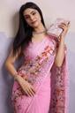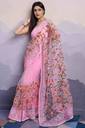 Pink colored style saree is made from net fabric which is highlighted floral embroidered as shown comes along unstitched georgette blouse piece which you can customize as per your design/style. Occasion - You can wear this saree for party and festive. Note:- The actual product may differ slightly in color and design from the one illustrated in the images when compared with computer or mobile screen.