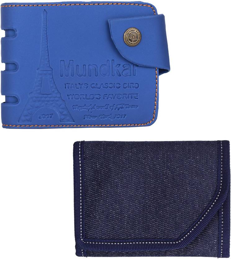 Peacock Mundkar Boys Blue Artificial Leather, Denim Wallet (5 Card Slots, Pack of 2)