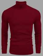 PEAK MOUNT Men Solid High Neck Red Sweater