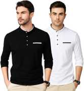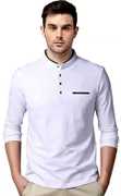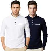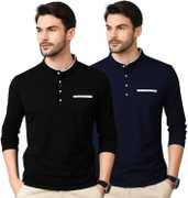 Upgrade your daily style with this Men's Full Sleeve Solid Polycotton T-Shirt, designed with a smart mandarin collar for a refined and modern touch. Made from premium polycotton fabric, this t-shirt provides a soft, breathable, and durable feel, ensuring long-lasting comfit throughout the day. The regular fit offers ease of movement and a flattering shape, while the chest pocket adds functionality and a smart casual look. Perfect for office wear, casual outings, or weekend get-togethers, this versatile piece pairs effortlessly with jeans, chinos, or trousers for a sleek and polished appearance.