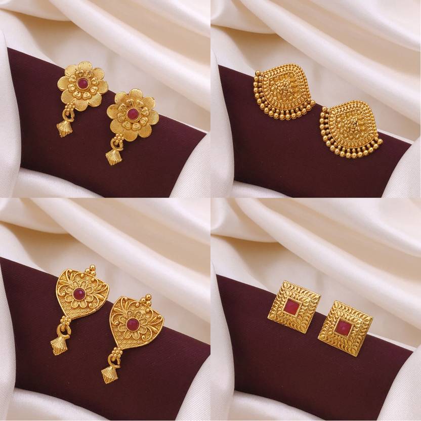 Sales Package: 4 Diffrent Type of Earrings Pairs. Each Earring We Can Wear by 4 Different Style.Made With Pure Brass. Color : Golden. Guarantee : 1 Year From Seller. Come With Proper Packed Box.Skin Friendly. We Can Use Even Bath Time, Color Will Not Fade.