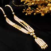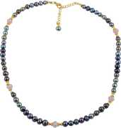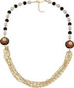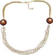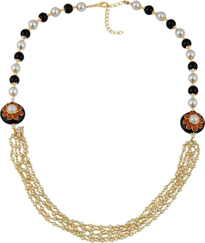 This mesmerizing necklace is hand-crafted in India by Pearlz Gallery. This fascinate 20 Inches necklace features string of round and coin shaped china shell pearl and jade black knotted together with metal embellishment that will set off any gathering. The white and black colors add charm to your look. A perfect necklace designed for all your favorite outfits. This necklace could be worn for occasions such as weddings, receptions and get-togethers.