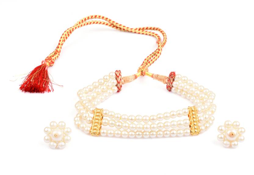 Pearlz Ocean White Coloured Pearl Necklace choker set for Girls and Women