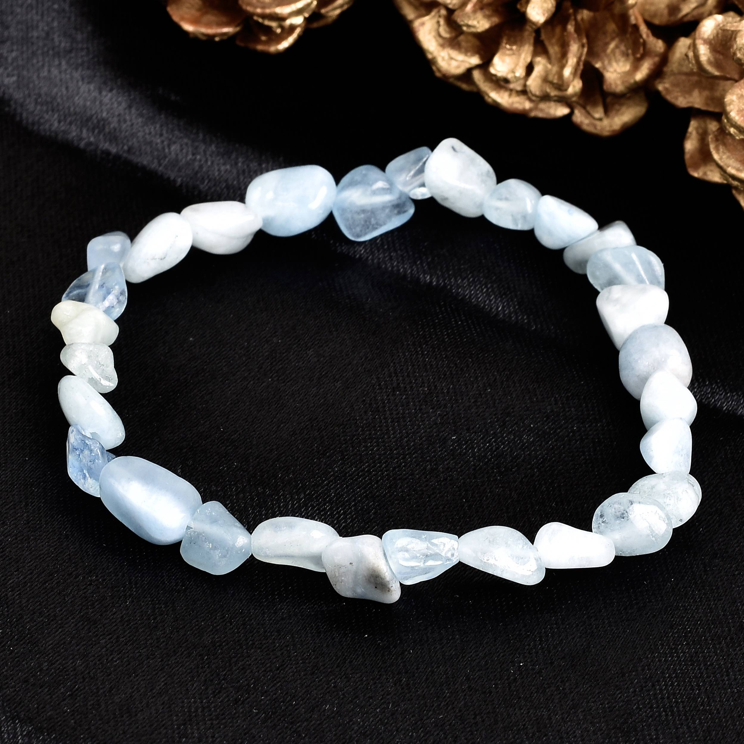 Elevate your style with our exquisite Aquamarine Beads stretchable Bracelet! This Blue beaded bracelet is adorned with captivating , creating a stunning contrast that catches the eye. Aquamarine, known for its grounding properties, combines harmoniously with the calming energy and positivity to your life. Whether you're dressing up for a special occasion or adding a touch of elegance to your everyday look, this bracelet is the perfect choice. Embrace the power of gemstones and fashion with this mesmerizing accessory.