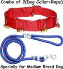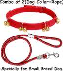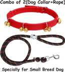 PEDIGONE Dog Belt (Combo of 2) Red Ghungroo Dog Collar + Red Lead Specially for X-Small Breeds Dog Collar & Leash (Extra Small, RRP)